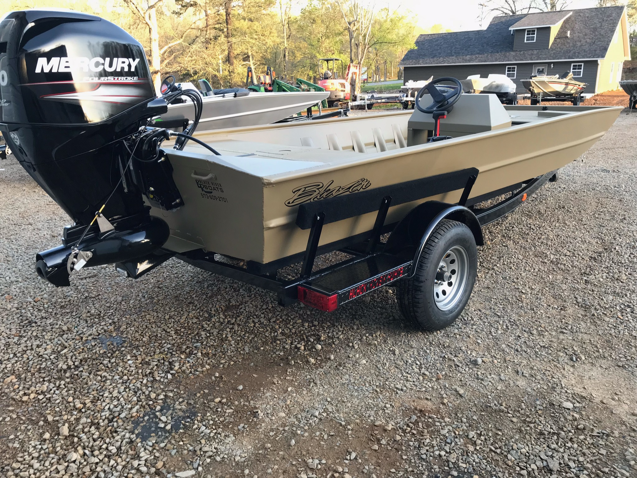 Manual’s 1856 Blazer Flat-v with Blacktrail aluminum trailer and mercury 80 Jet
