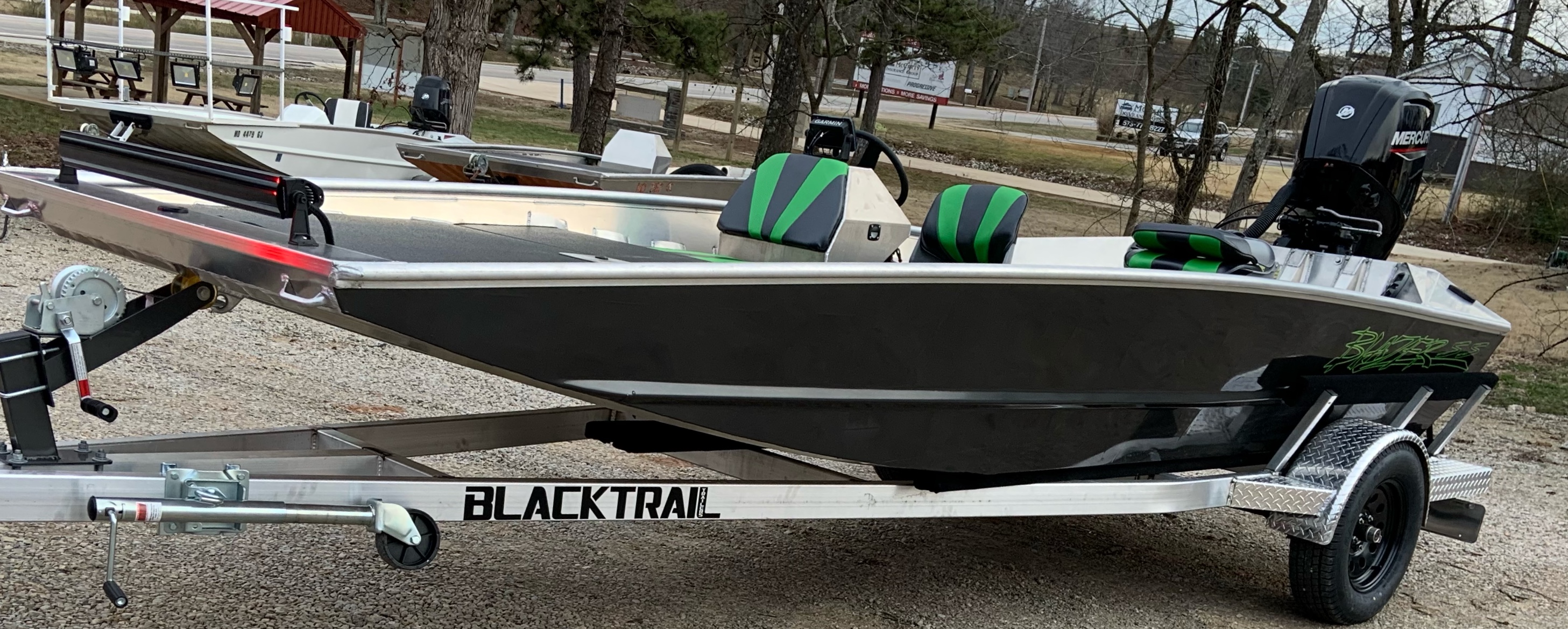 This 1856 Blazer SS Flat-v feauteres a Blacktrail Aluminum trailer and a Mercury 80hp Jet. Some options include, storage console, deck extension, ...